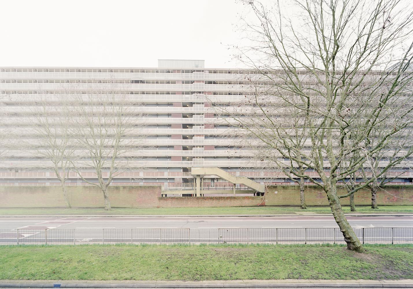 Kennedy’s photographs are not intended to be sentimental, they do not mourn the failures of post-war social housing and they are not photographs about the Heygate as “place”, in many ways the physical architecture is seen as simply supplying convenient forms that are re-organised and reduced to abstract compositions. The architectural elements of the Heygate Estate lose their “functionality” becoming planes and surfaces exposing the underlying abstractions of the original architectural project.