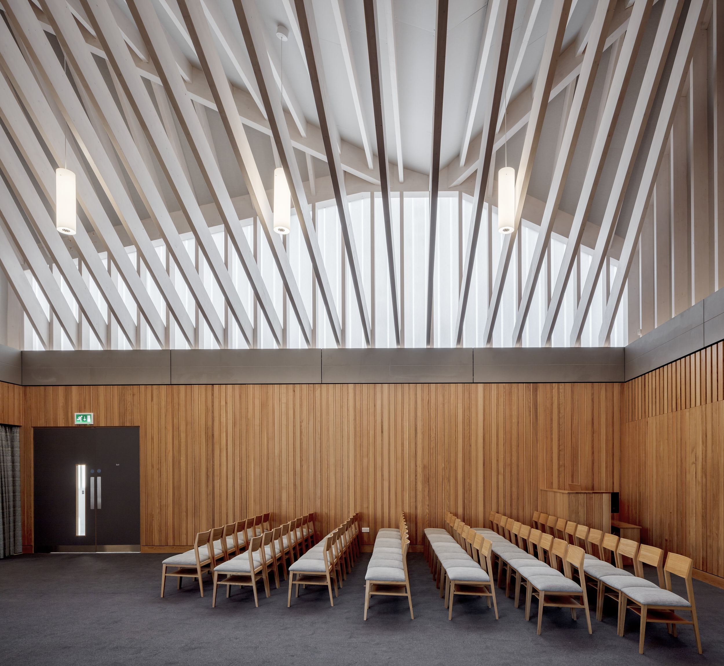 This stunning structure was designed by London-based Haverstock Architects, on the edge of Guildford. The building is spread across the landscaped site in a sequence that responds to the flow of the mourners, incorporating the flexible, non-denominational internal spaces that contemporary crematoria demand, and stunning courtyards and walled gardens that encourage contemplation and the celebration of life. The building is meticulously detailed and beautifully crafted.